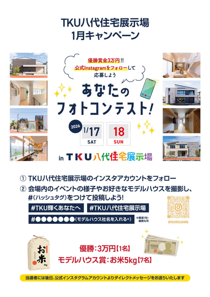優勝賞金3万円! 公式Instagramをフォローして応募しよう「あなたのフォトコンテスト!」in TKU八代住宅展示場